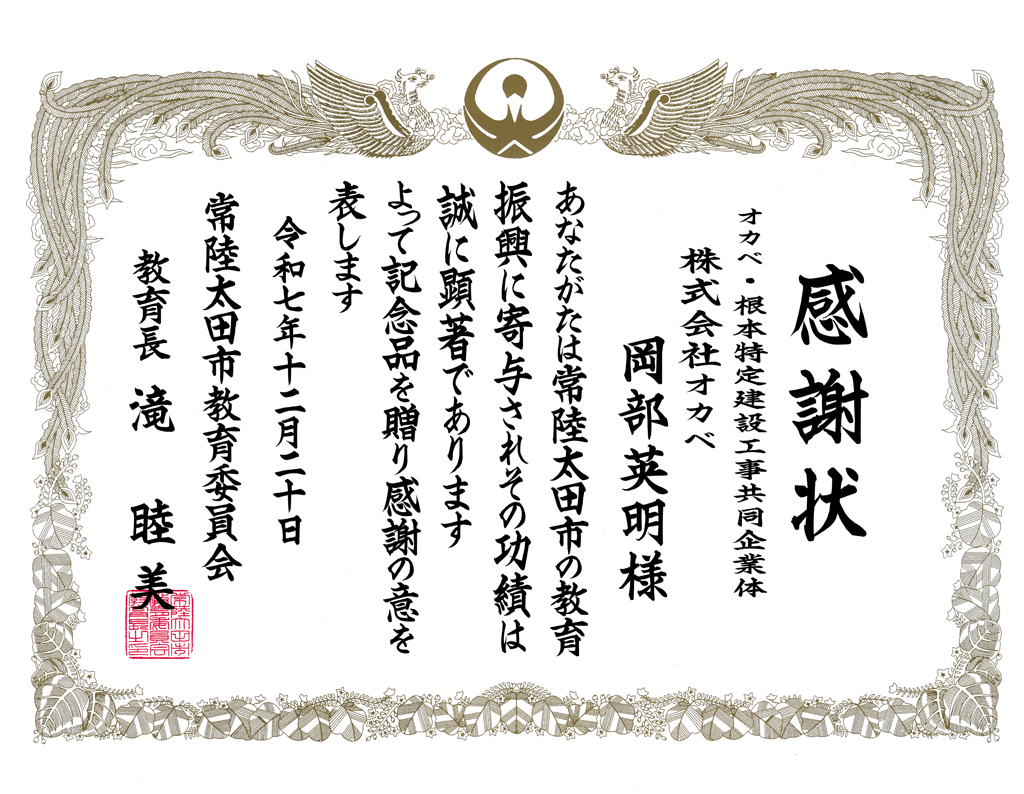令和7年度常陸太田市建設業者等表彰 優秀賞を受賞致しました。